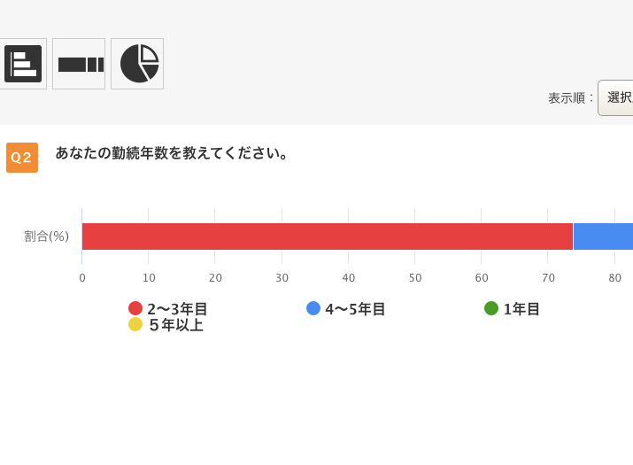 回答した内容を自動採点して表示します。全体と自身の回答を比較して確認することができます。従業員教育や社内テストの用途でお使いいただけます。