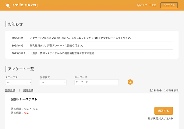 - 定点観測のため回答者が過去の回答済みアンケートにアクセスできるようにしたい